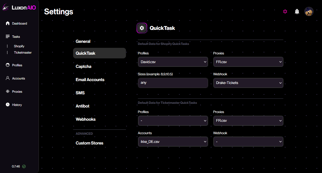 Our automated add to cart feature ensures you never miss out on tickets – simply set your preferences and LuxonAIO does the rest.