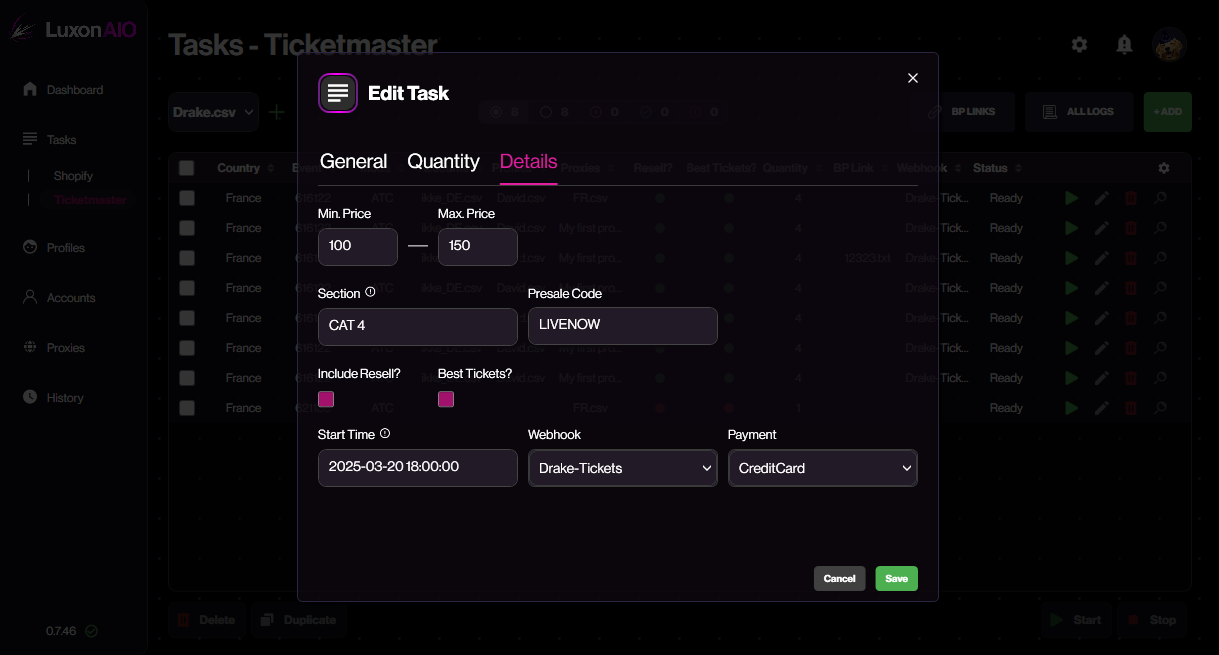 Use LuxonAIO to secure tickets for high-demand events and resell them for a profit. The bot pays for itself in no time, making it a valuable tool for savvy users.